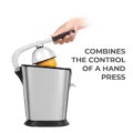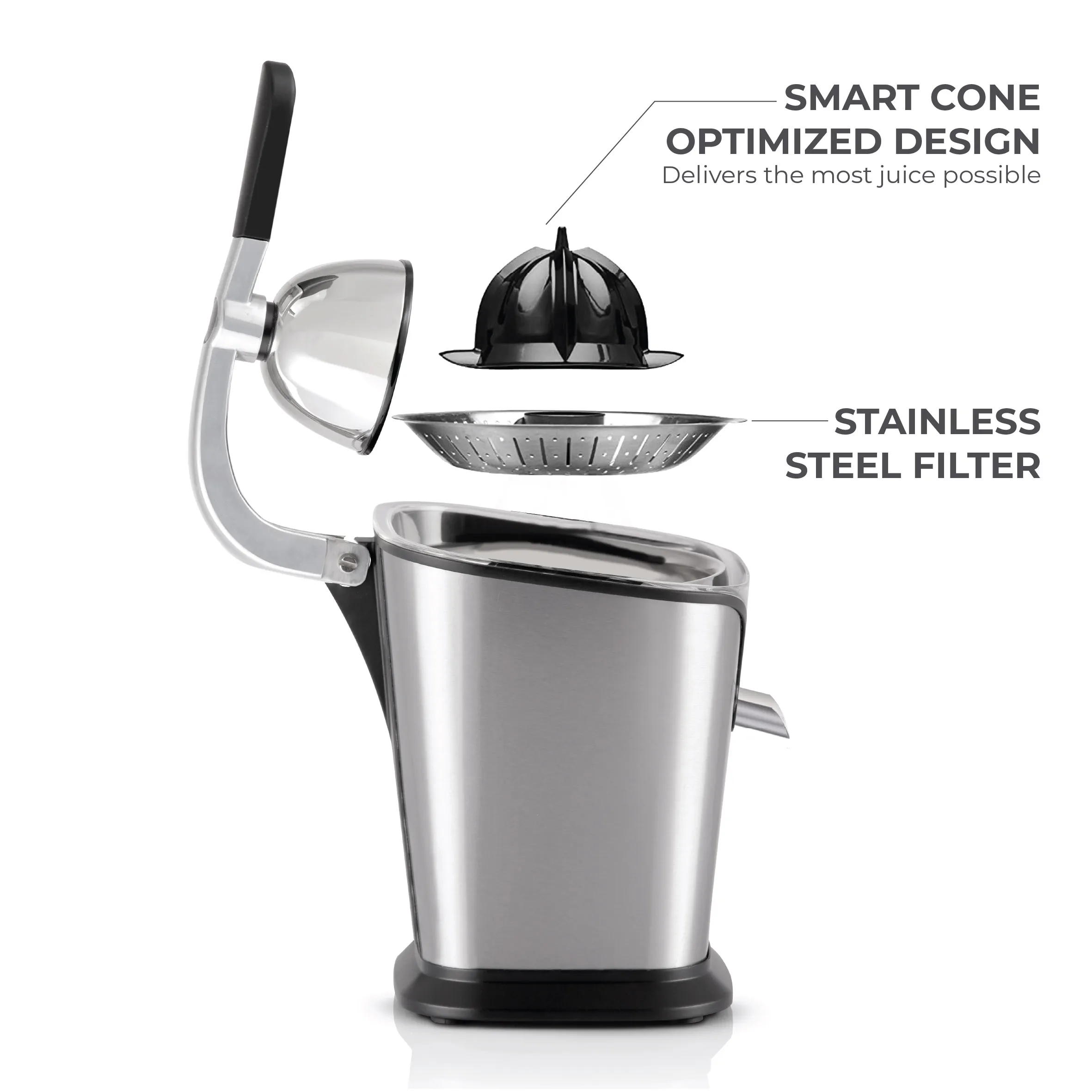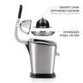 Strong Lever Arm: allows easy operation of the electric juicer, the press cone begins to rotate once pressure is applied on the lever arm, the arm is ergonomically designed to reduce strain on your hand