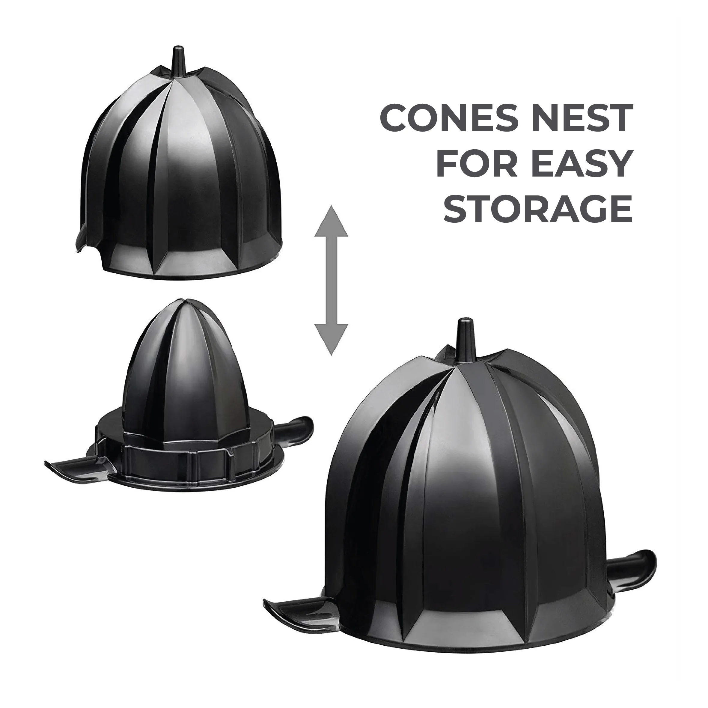 2 different pressing levers: the electric orange press has 2 included pressing cones, very easy to assemble, the small cone always stays on, for larger fruits, just put the big cone on it and you can easily press oranges, lemon etc…